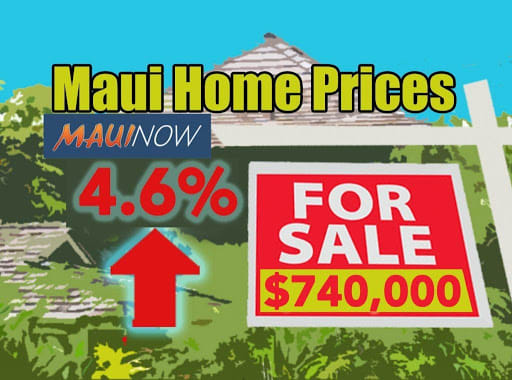 Maui home prices were up 4.6% in December to $740,000 for a single-family residence; and condo prices were up 4.7% to $514,120.