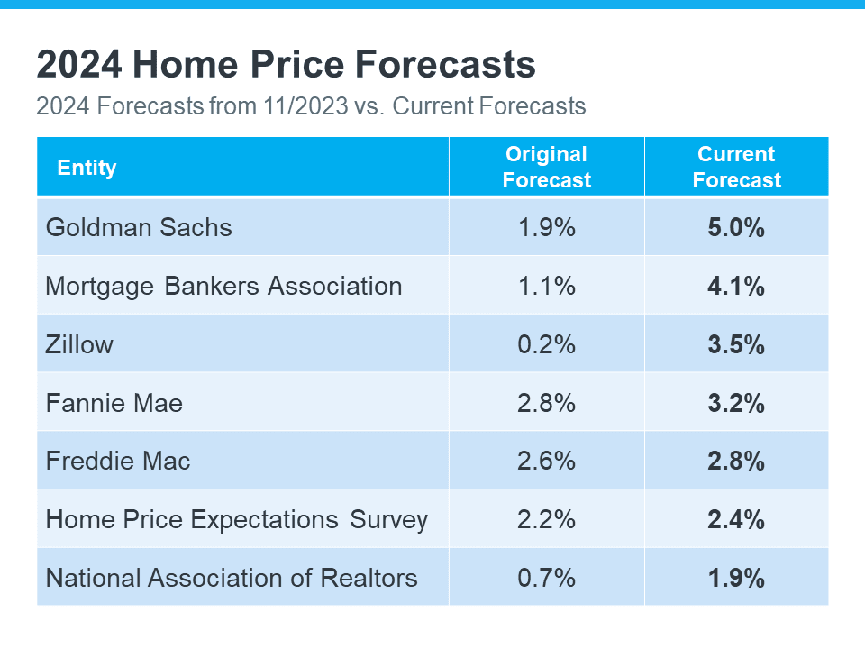 Over the past few months, experts have revised their 2024 home price forecasts based on the latest data and market signals, and they’re even more confident prices will rise, not fall.
