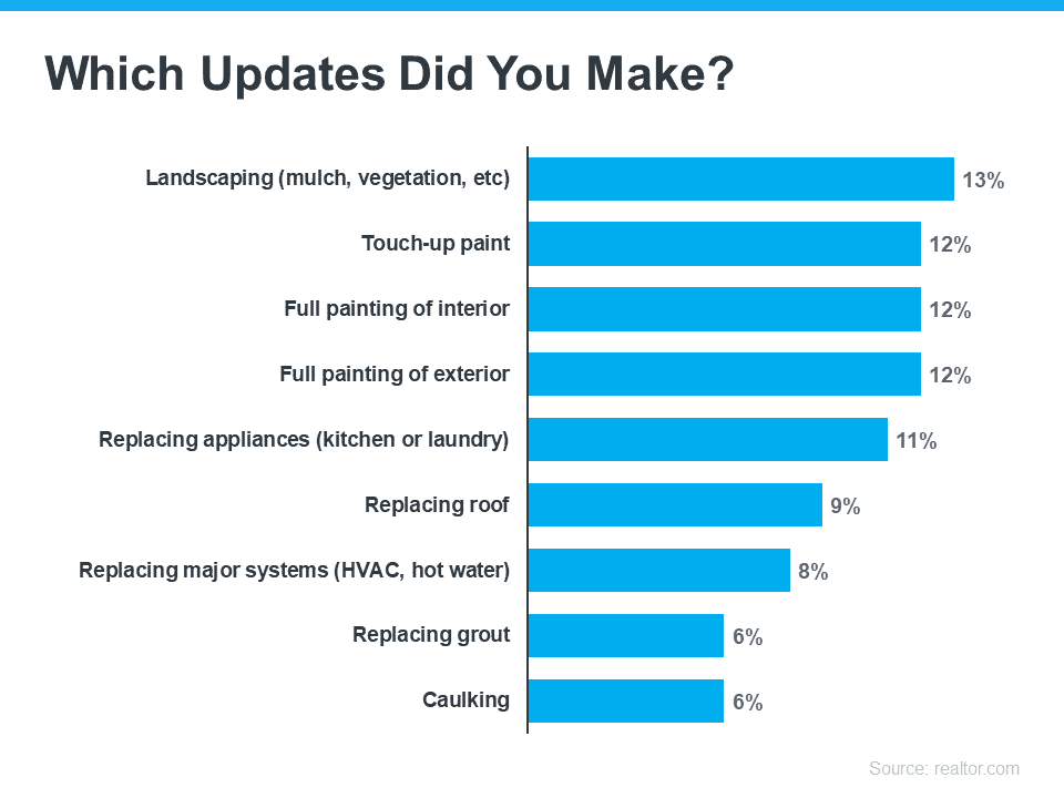 As you can see, the most common answers included landscaping and painting. Work with a trusted real estate agent to determine what projects make the most sense for your goals and local market.