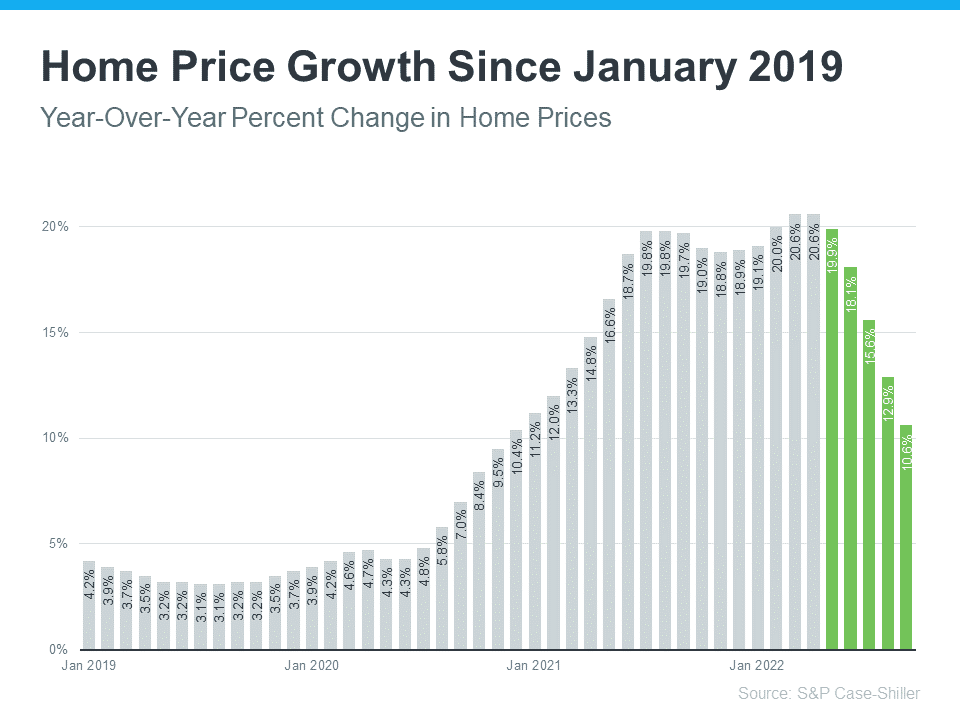 While home prices are down slightly month-over-month in some markets, it’s also true that home values are up nationally on a year-over-year basis. The graph below uses the latest data from S&P Case-Shiller to help tell the story of what’s actually happening in the housing market today: